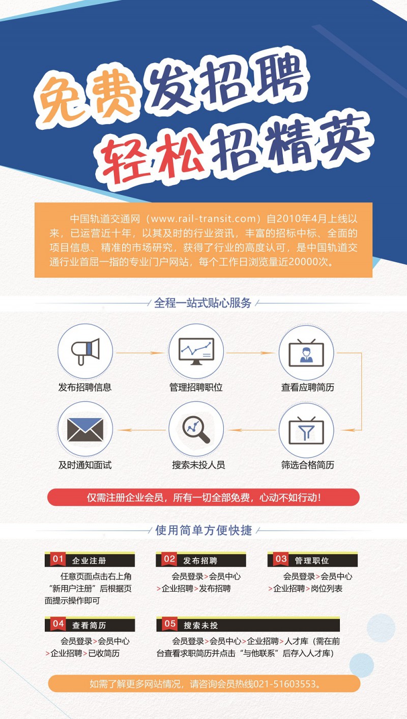 • 免費發招聘,輕松招精英-中國軌道交通網助企業招攬行業人才