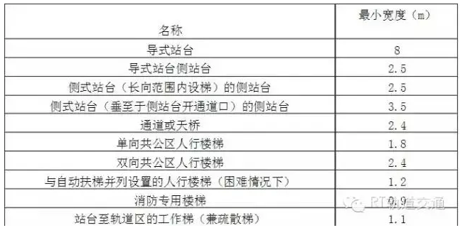 (2)站臺寬度:應按車站客流量計算確定,但不得小于《地鐵設計規范》(GB 50157)表8.3.17-1 規定的數值。