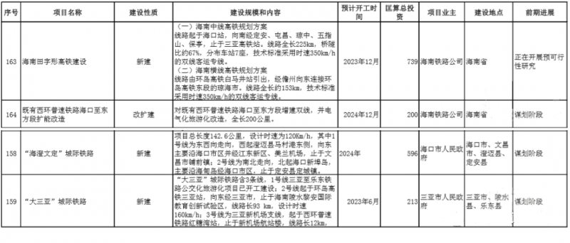 值得期待的是,“海澄文定”城際鐵路、“大三亞”城際鐵路、海南田字形高鐵建設、G360文昌至臨高公路等重點路網工程同樣在列。