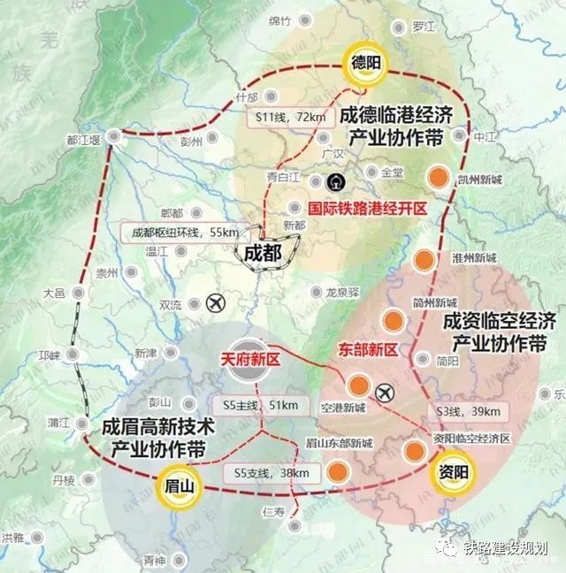 根據可行性研究報告,線路串聯了成都、德陽、眉山、資陽4市19個區縣,連接了進出成都的11條干線鐵路以及天府國際機場、東部新區、都江堰、青城山等重要區域,是一條打造軌道上的成渝地區雙城經濟圈、支撐成德眉資同城化發展、有效實現多網融合的成都都市圈客運專線。