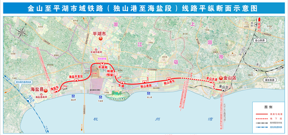 項目自上海金山鐵路金山衛站引出,終至海鹽縣,全長52.0公里,其中浙江段長41.6公里,共設獨山港東站、獨山港西站、乍浦站、林埭站(預留)、平湖南站、海鹽開發區站、海鹽東站7個車站。