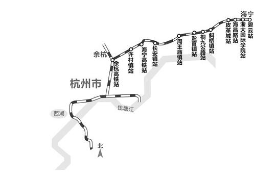 杭海城際是杭州都市圈城際鐵路4條(杭海、杭紹、杭德、杭安)支線之一,也是杭州首條通往市外縣域的城際鐵路。起于杭州余杭高鐵站,出站向東經過許村、長安鎮、周王廟、鹽官鎮、斜橋進入海寧市主城區,經皮革城后,沿海州東路至08省道(環城東路)止。與杭州地鐵1號線(遠期9號線)換乘,線路全長48.18公里,設站13座,其中地下車站5座,高架車站8座。